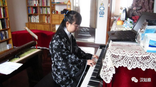 2012年7月暑假,在家里的日常生活里,我也穿着汉服进行活动,如弹钢琴。