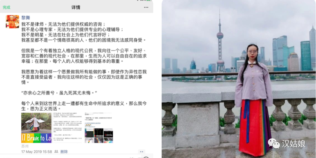 其中最坏的情况莫过于我有可能会同时被汉服和LBGT两个圈子排斥、诽谤,里外都不是人。但我想,既然我一直坚信自己做的事情是对的,我就不是一个会因为外界给我的压力太大就轻易放弃内心所求之事的人,从前不是、现在不是,永远都不会是。