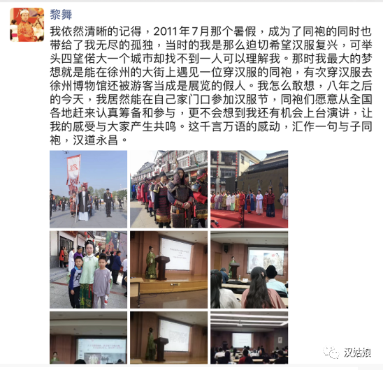 我还记得2011年的那个暑假,伴随着成为同袍的觉醒一同而来的是无人理解的孤独。我看着徐州这座我生活了18年之久的城市,头一回觉得它无比陌生,放眼望去无一人懂我。那种漫无边际的孤独包围着我,令我感到窒息。那时的我做梦都不敢想,八年之后,可以有来自全国各地的汉服同袍,齐聚在徐州。