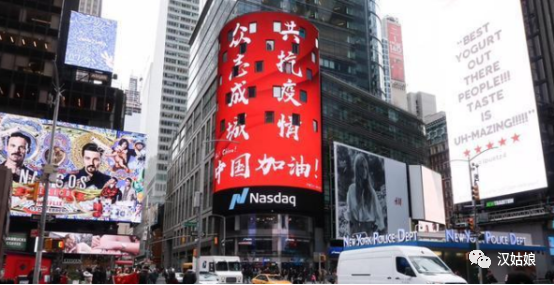 这张摄于纽约纳斯达克广场的照片,上面巨幅广告里有着用各个民族的语言写成的对中国的鼓励和支持。即使没有去过美国,纽约纳斯达克广场对于我们汉服同袍来说都不陌生,因为那里曾经也播放过我们汉服的宣传视频,也曾把华夏衣冠展示在世界人们面前。