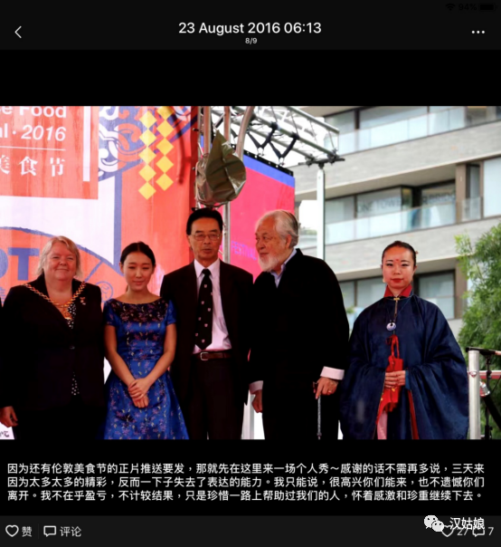 2012年3月,璇玑姑娘在英国街头吹笛子的这组照片在人人网上突然疯狂转发,也让我从侧面知道了英国对于汉服文化一个包容和欣赏的环境,更加激励了我将来要在英国继续宣传汉服的决心。