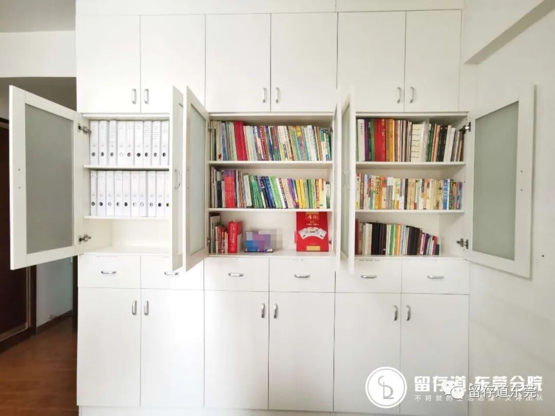 在卧室里增加一排书柜,收纳完2个榻榻米的所有资料与书籍。