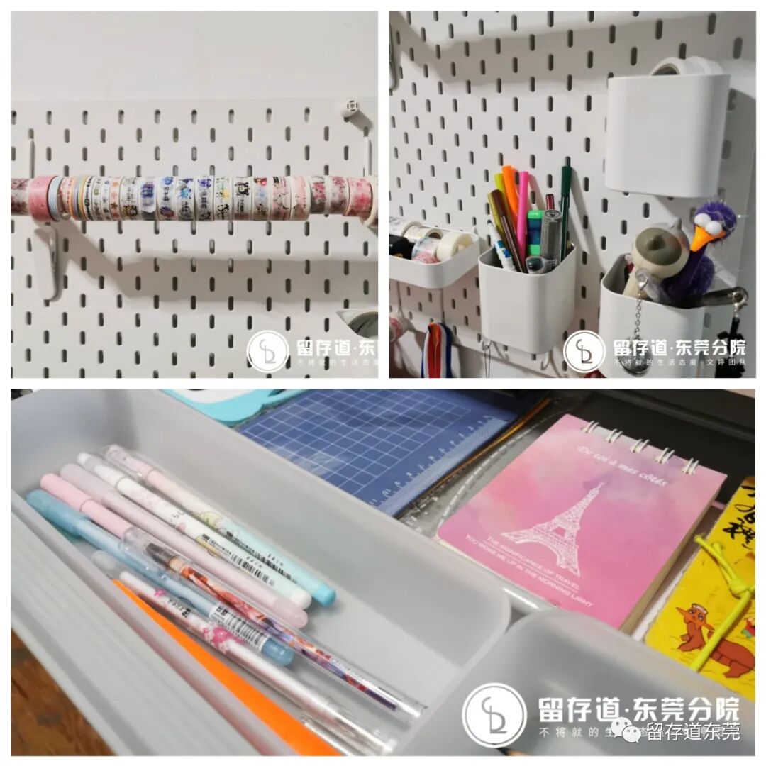 洞洞板的收纳很强大,在这里当作手帐材料的收纳区。